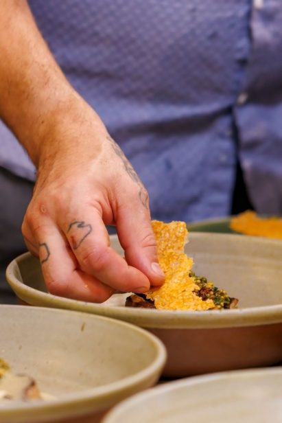 “For this dinner, I considered Pecorino Romano both as a flavor and a seasoning,” Chef Lanza explained. “It has its own unique umami that I crave and also enjoy layering in dishes. We used a Pecorino Romano of Sardinian origin, which is generally considered a bit sharper and saltier. In this case, we Microplaned it on top of the zucchini to round out the dish instead of seasoning salt, or mixed a touch of small granules into the breadcrumbs that were stuffed into the shells of mussels.”