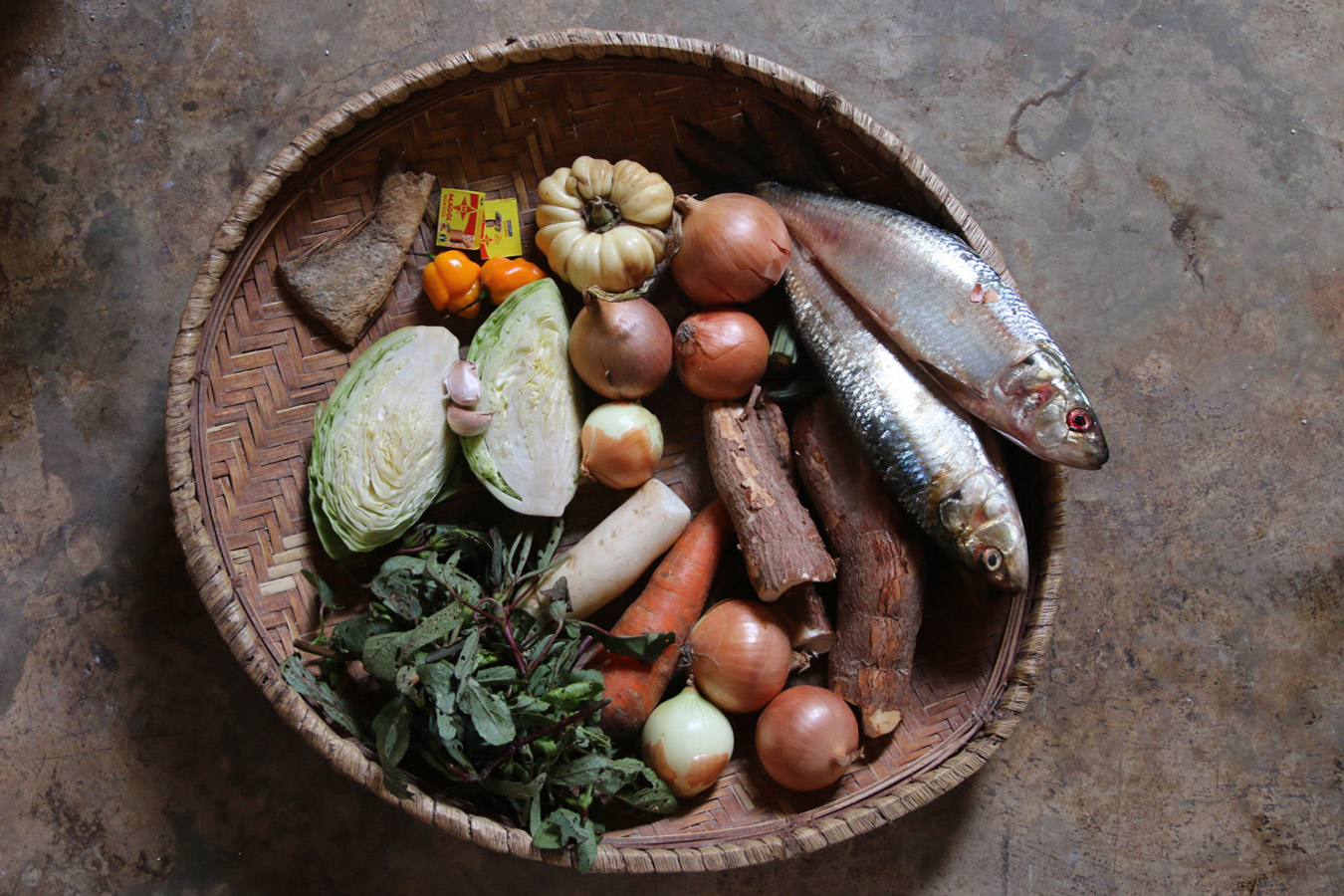cassava, okra, and fish, vary from day to day depending on which vegetables are available at