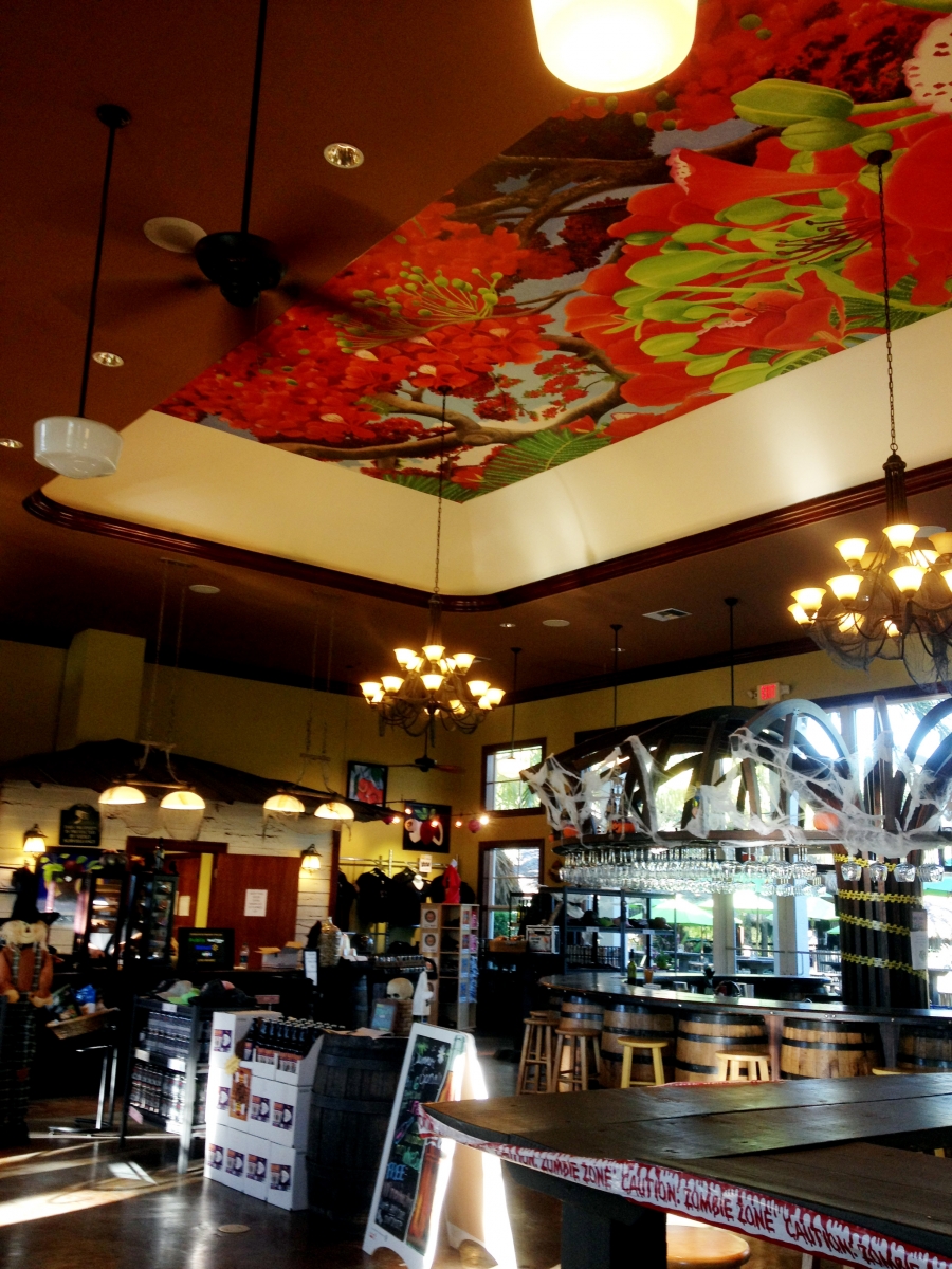 Look up at the ceiling of Schnebly Redland’s Winery tasting room in Homestead and you’ll see her huge royal poinciana mural. And now, her colorful art is covering up unattractive utility boxes.