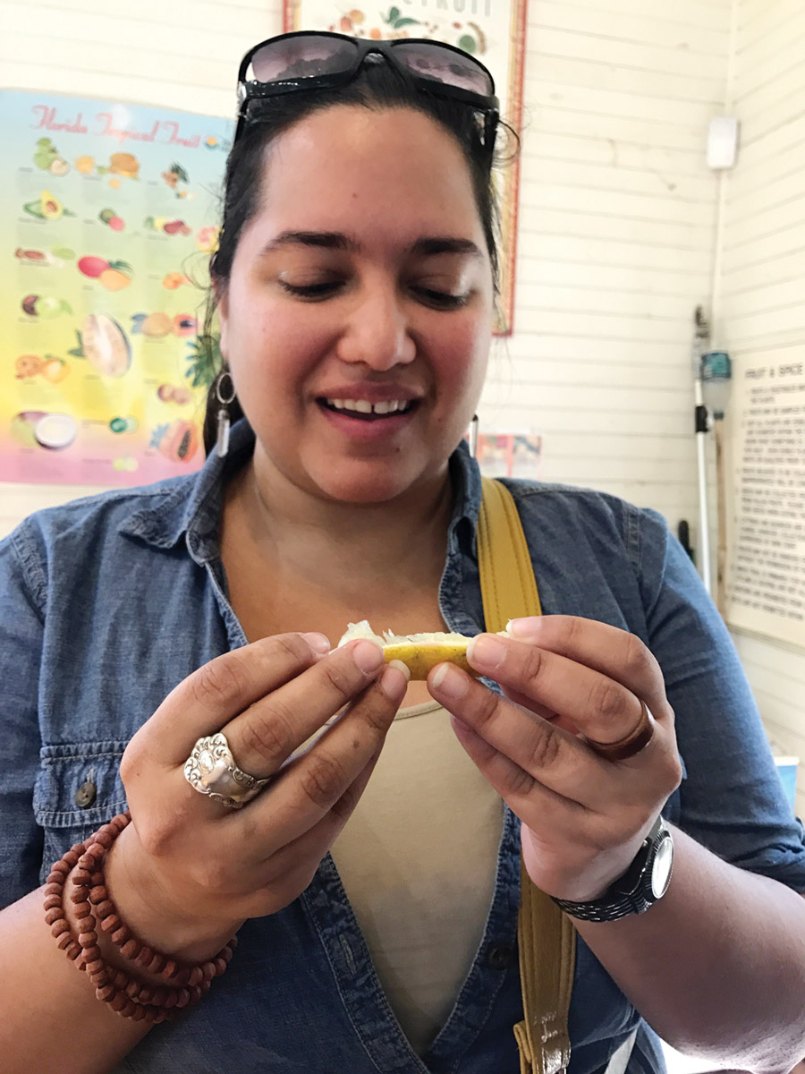 One of the fruit’s biggest advocates is Iva Hegg, guest services representative at Fruit and Spice Park in the Redland. On any day, she and her colleagues give tours and offer guests samples of tropical fruits gathered from the park – carambola, rollinia, ambarella, calamondin, black sapote, to name just a few. But it is Hegg who’s made it her mission to spread the word about the miracle fruit’s taste-altering qualities in an effort to reach someone – anyone – who might be helped, whether they’re undergoing chemo or taking medications that affect their sense of taste, or have lost their taste and smell after surgery.